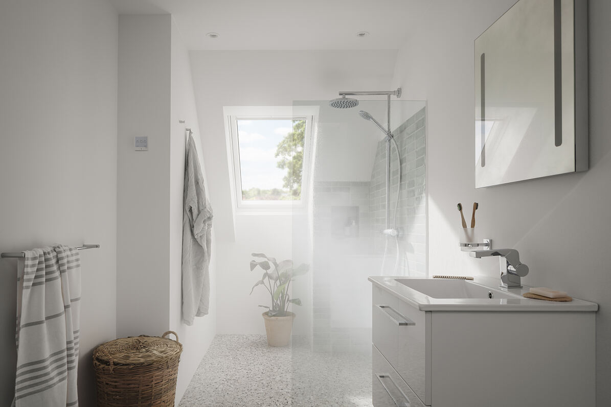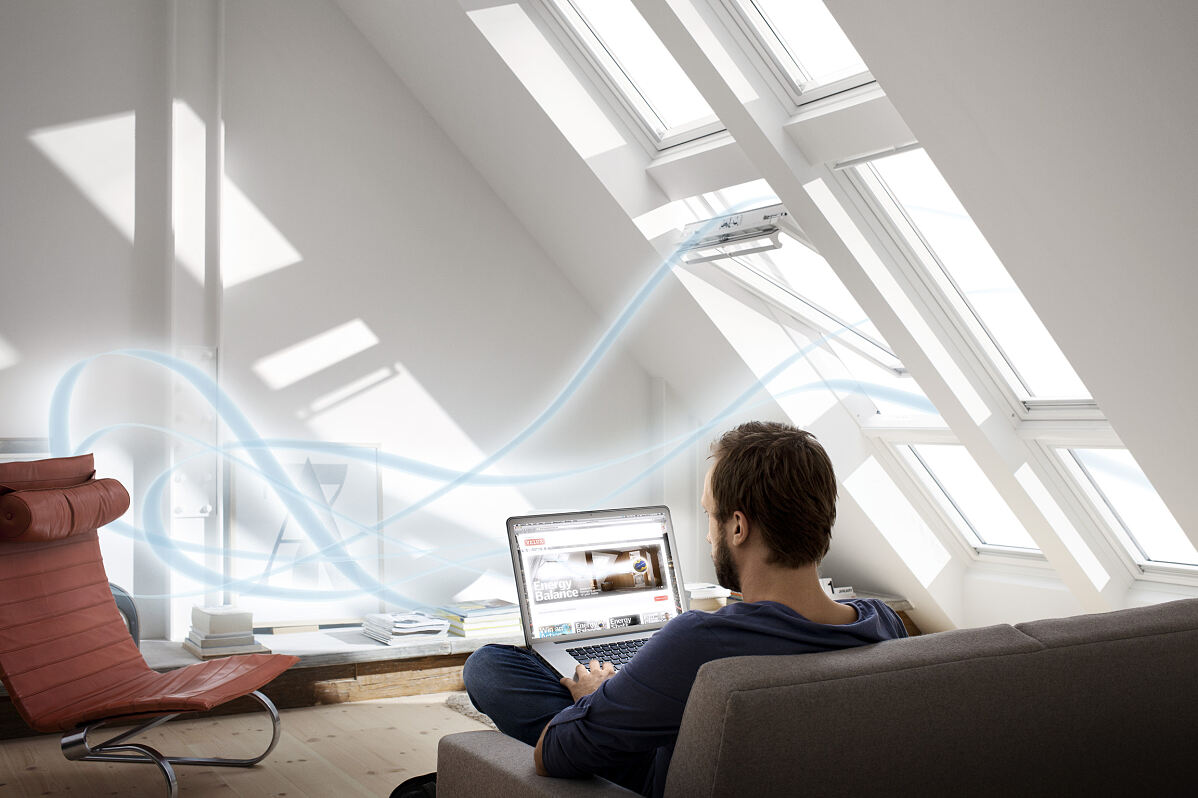 Smarte Systeme bieten zusätzlichen Komfort und helfen, das Raumklima effizient zu steuern. So lassen sich mit VELUX Active elektrisch betriebene Dachfenster ganz einfach bedienen: Lüftungsintervalle lassen sich bequem per App steuern oder werden automatisch dem aktuellen Raumklima angepasst. So bleibt das Raumklima optimal und es kommt zu keinen unnötigen Heizenergieverlusten.